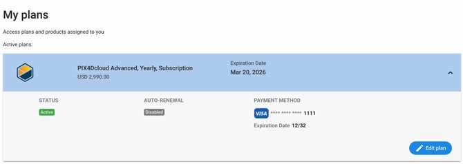 サブスクリプションプランはいつでも解約または変更が可能です。プランを解約すると、自動更新オプションおよび関連する請求が停止されます。PIX4Dcloud、クラウドクレジットは購入したプランによって決定され、サブスクリプションの有効期限まで利用可能です。