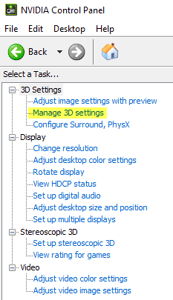 3. In the NVIDIA Control Panel window, in the section 3D Settings, click Manage 3D settings.