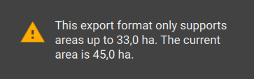 - "This export format only supports areas up to 33 ha."