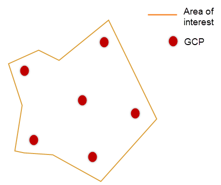 - The GCPs should be placed evenly on the landscape to minimize the error in scale and orientation.