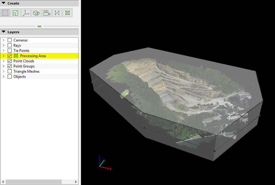 - Processing Area: This layer displays the Processing Area defined in the Map View or the rayCloud.