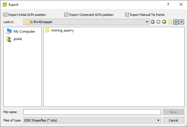 Note: If the model does not have GCPs or Manual Tie Points, the option Export Points will be grayed out.