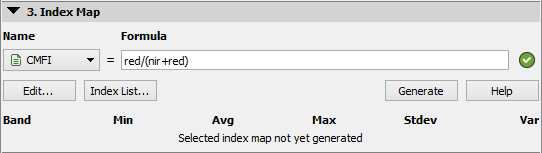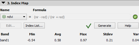 If the selected index has not been generated, it displays: "Selected idex map not yet generated."