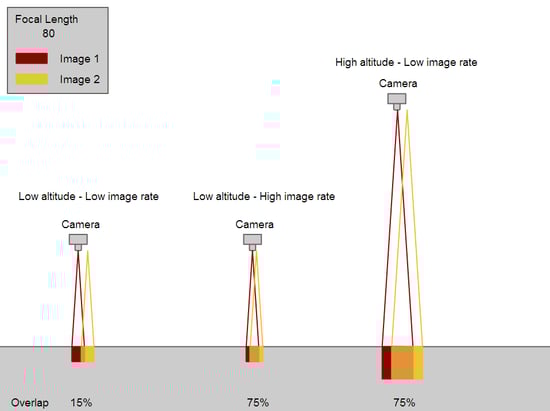 - For a given focal length and a given image rate, increasing the altitude will increase the overlap.