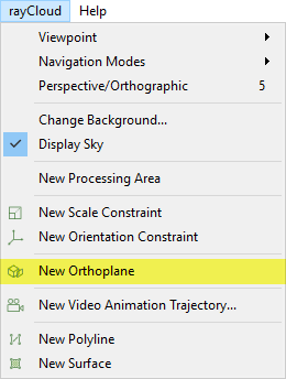 2. On the menu bar, click rayCloud > New Orthoplane.