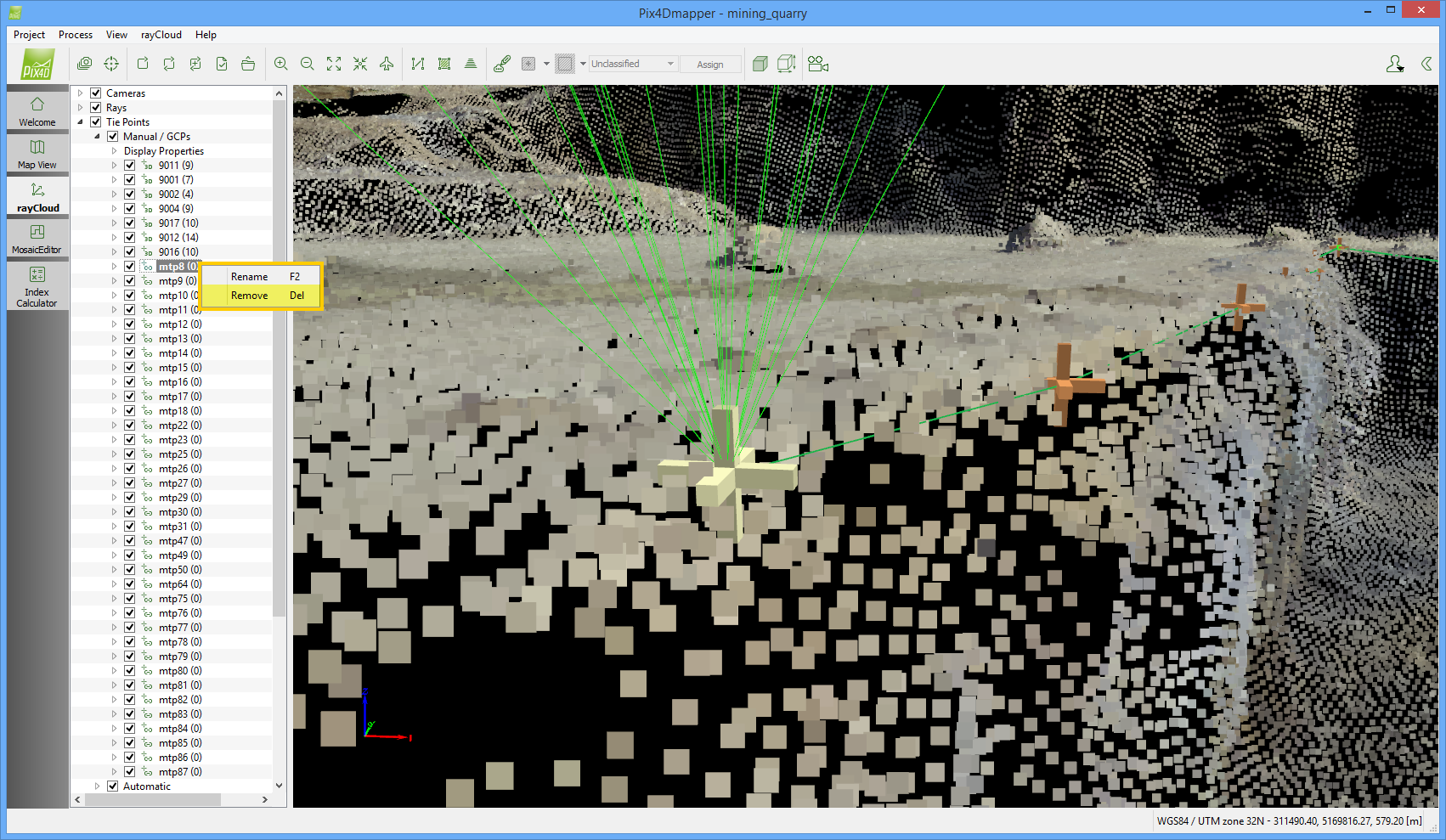 2. On the Layers Sidebar on the left, right click on the corresponding Manual Tie Point (mtp).