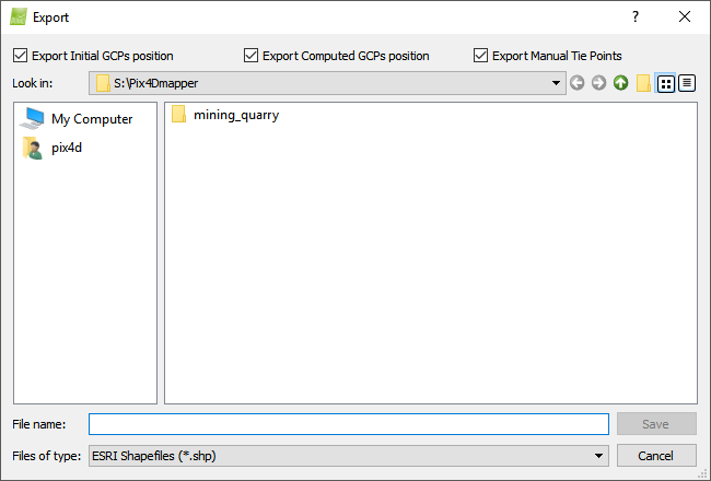 In order to export Manual Tie Points and / or GCPs (option available if at least one Manual Tie Point or GCP exists in the project):
