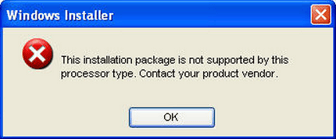"This installation package is not supported by this processor type. Contact your product vendor."