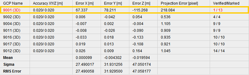 A GCP / Check point can be displayed with red color at the quality report. This indicates a problem with this specific point that is not taken into account for processing.