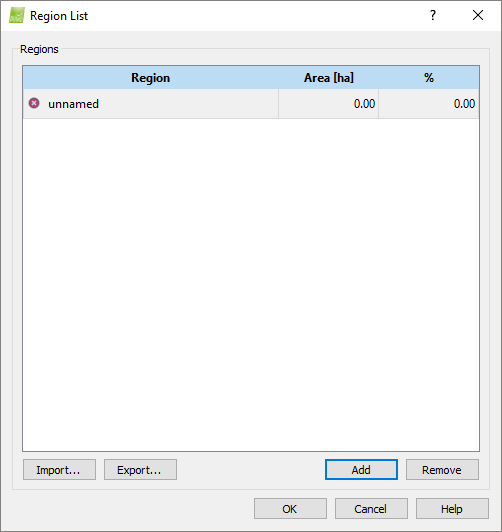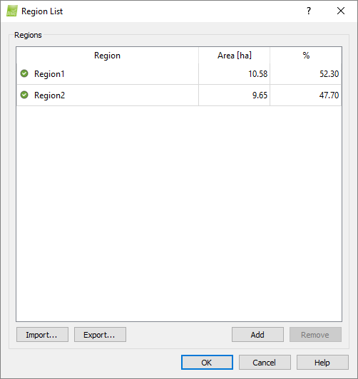 7. (optional) Click on Regions... to display the area of the regions and the percentage each region occupies among all the regions.