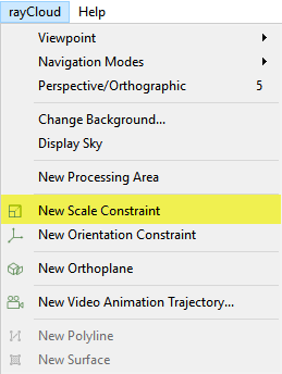 2. On the Menu bar, click rayCloud > New Scale Constraint.