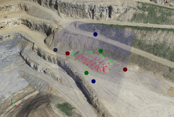 The 3D Volumes view is a simplified version of the rayCloud view to facilitate the volume measurements. The different layers that are displayed in the 3D View (also visible in the rayCloud) are: