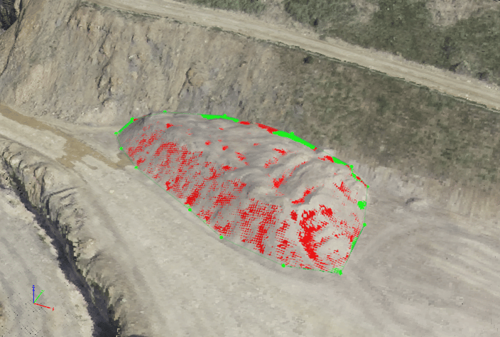 - Red Terrain: Triangles between the base surface and the terrain defined by the DSM.