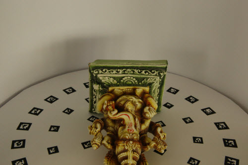 In this approach, the camera is not moving but it is fixed and the object is rotating on a turntable with visual markers.