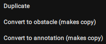 - Choose Duplicate, Convert to Obstacle or annotation: