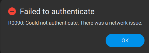 R0090: "Failed to authenticate. Could not authenticate. There was a network issue."