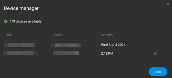 - A comprehensive list of all devices connected to the license will be displayed, including each device's name for easy identification.