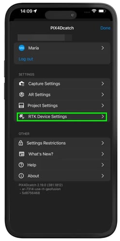 Select the NTRIP coordinate reference system using the Pix4D supported RTK device