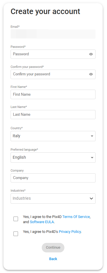 Sign-up - How to create a Pix4D account