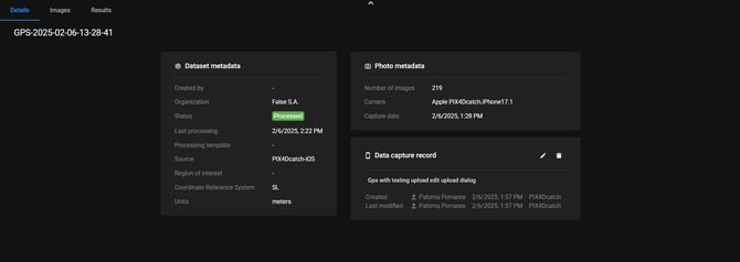 Note: The Data capture record section is only available for projects uploaded from PIX4Dcatch. For more information, see here.