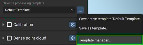 The Processing template manager looks like this:
