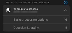 The Gaussian Splatting process requires additional processing power and time. Therefore, any project using this technique incurs an additional fee of 5 credits, regardless of the number of images.