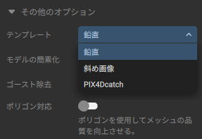 - 鉛直: 鉛直方向の空撮データに最適化されています。
