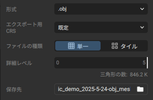 - [詳細レベル]: エクスポートする三角形の数です(0 - 9)。