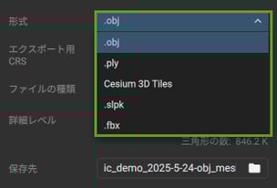 メッシュにエクスポートでは、以下の形式が選択できます。